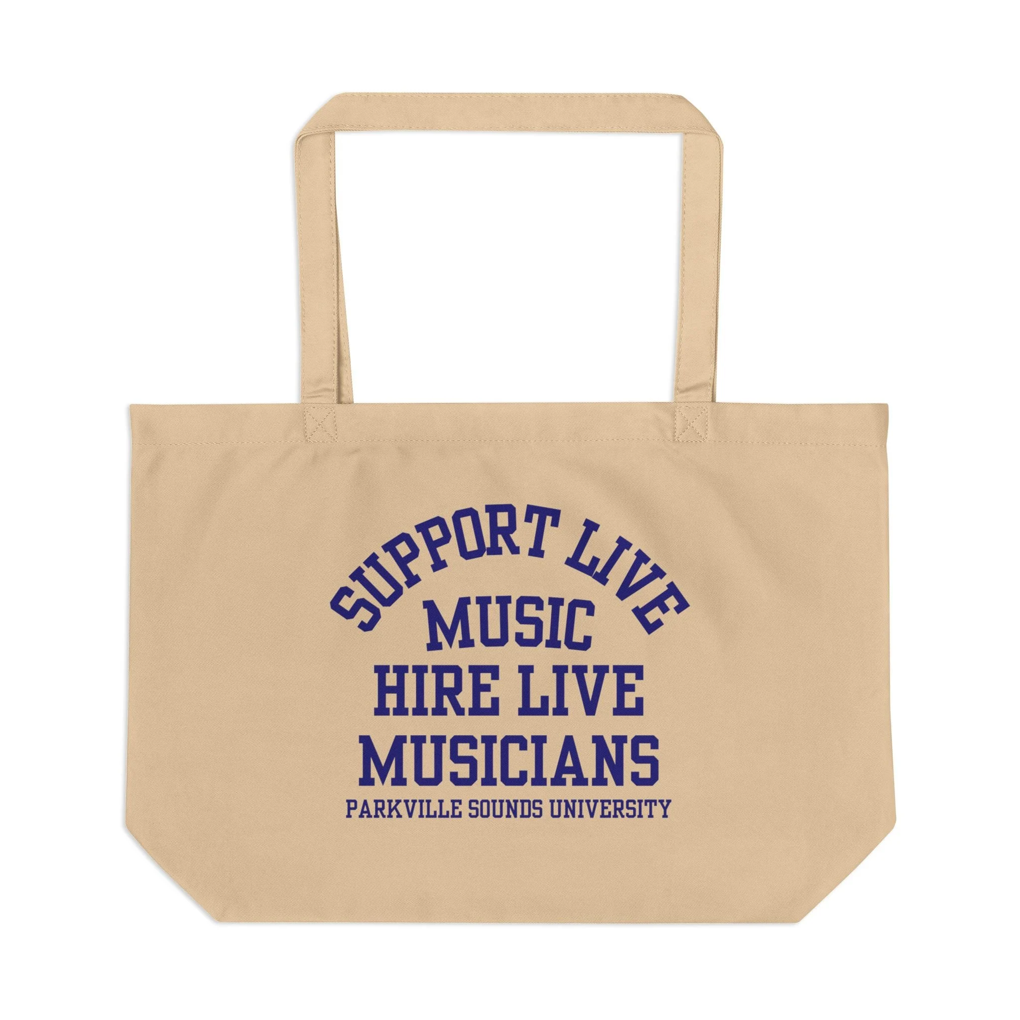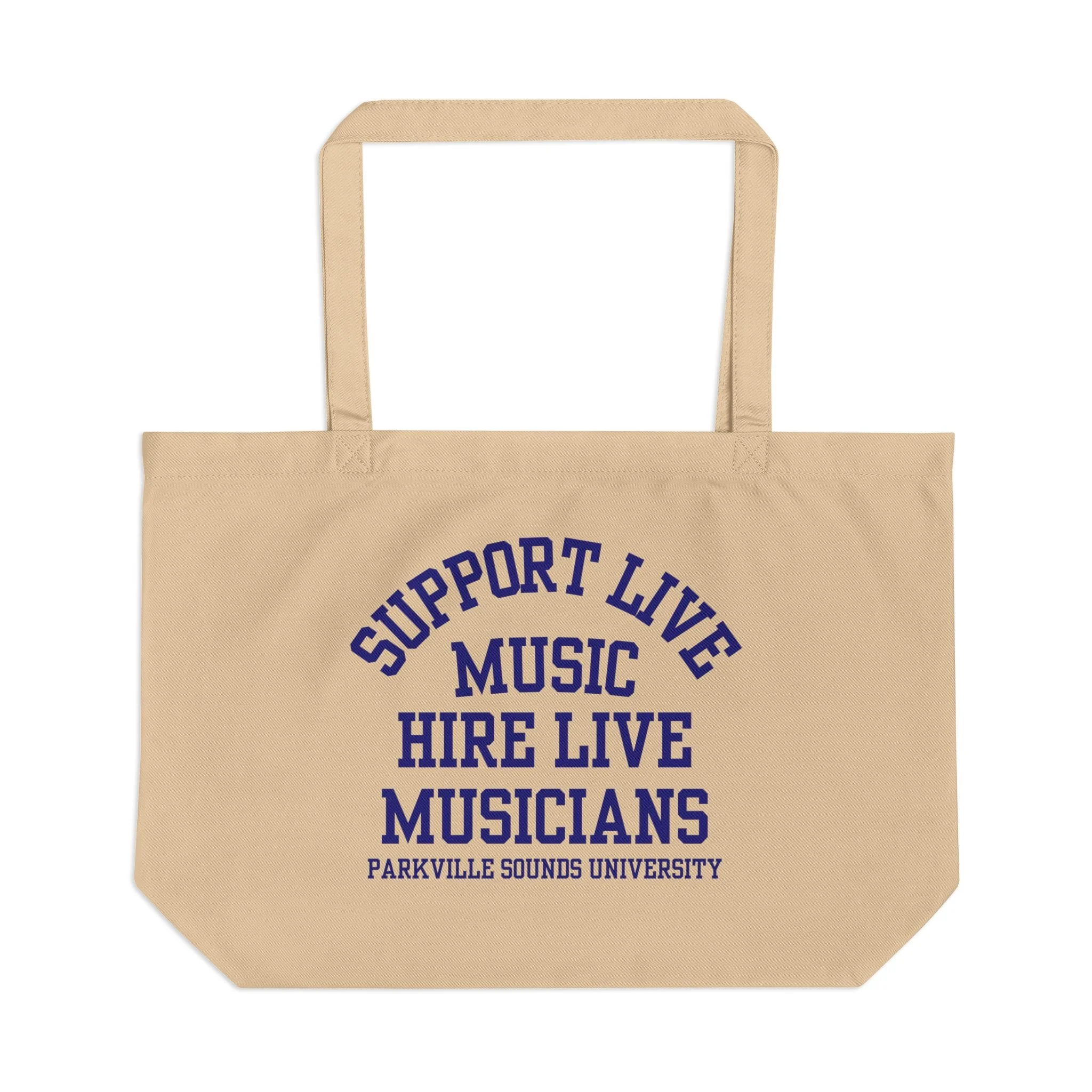 This Large Eco Tote blends functionality with a commitment to sustainability. Made from 100% organic cotton twill, it offers a spacious 6-gallon capacity perfect for shopping trips, picnics, or daily errands. The earthy vibe complements a mindful lifestyle while showcasing your support for local musicians with its vibrant print. Ideal for eco-conscious individuals, music lovers, and anyone who values practical yet stylish accessories. Perfect for holidays, festivals, or casual outings, this tote allows you to carry your essentials while making a statement for a good cause.