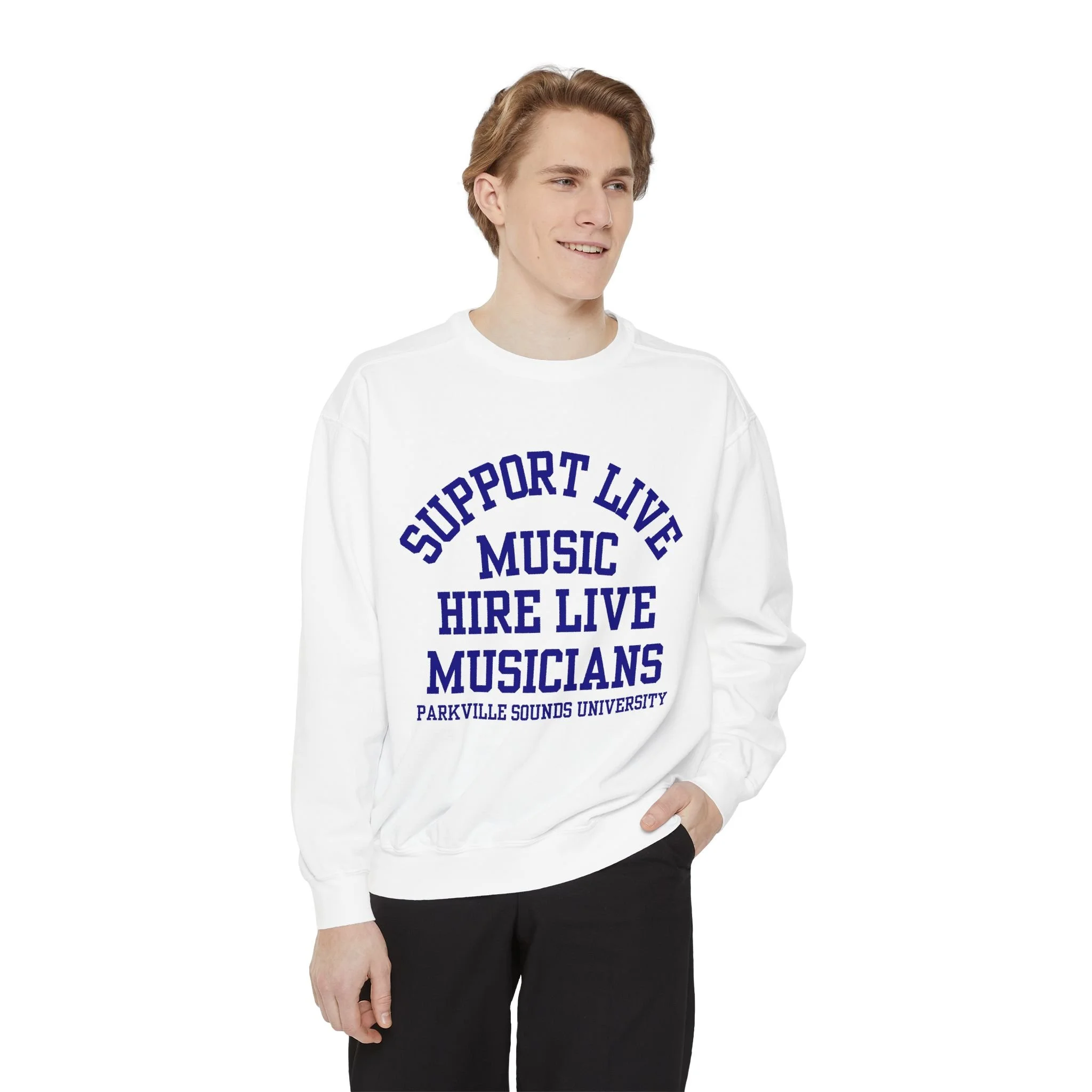 Embrace comfort and style with this unisex garment-dyed sweatshirt, perfect for music lovers and creative spirits alike. The soft fabric drapes comfortably across your body, making it ideal for casual outings, cozy nights in, or even lounging at home while you enjoy your favorite tunes. This relaxed-fit sweatshirt radiates a laid-back vibe, perfect for anyone who appreciates music and wants to make a statement. It's a great gift for musicians, supporters of live music, or anyone looking to celebrate their passion in style. Ideal for occasions like concerts, music festivals, or simply hanging out with friends, this sweatshirt seamlessly integrates into your everyday wardrobe.